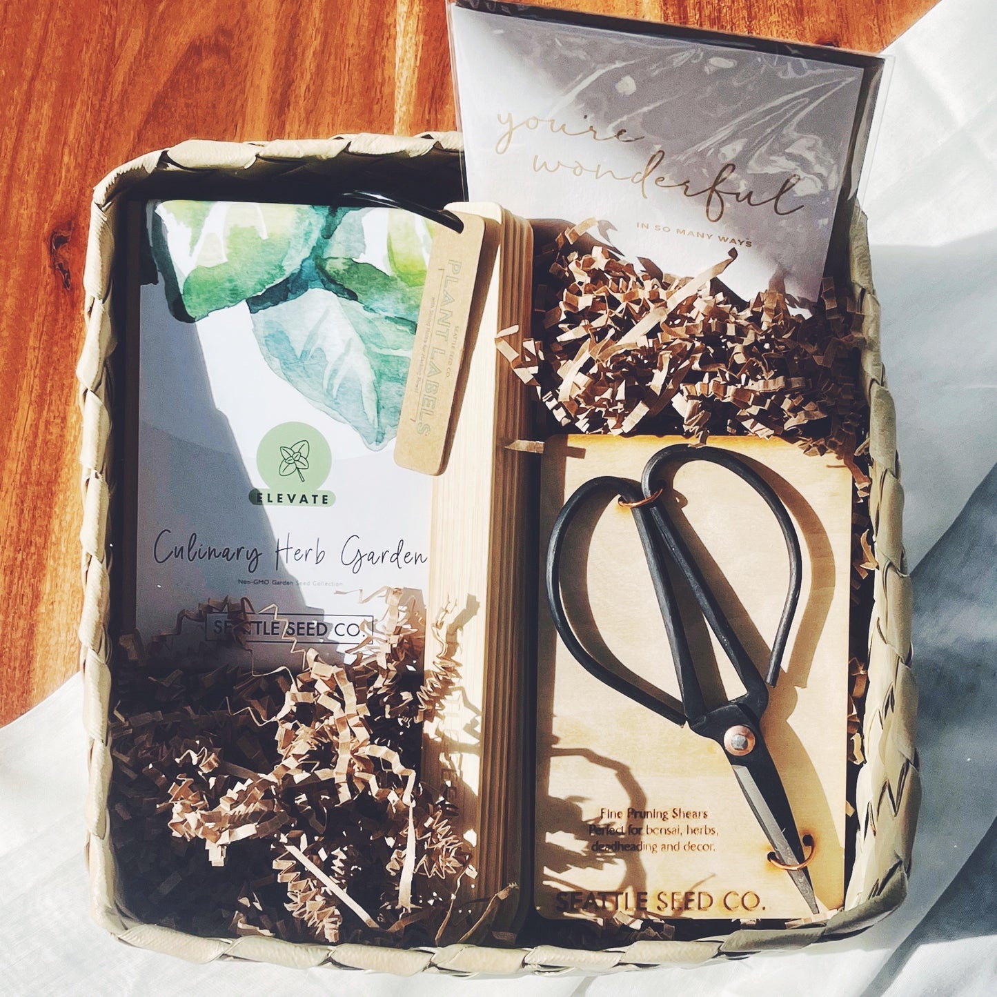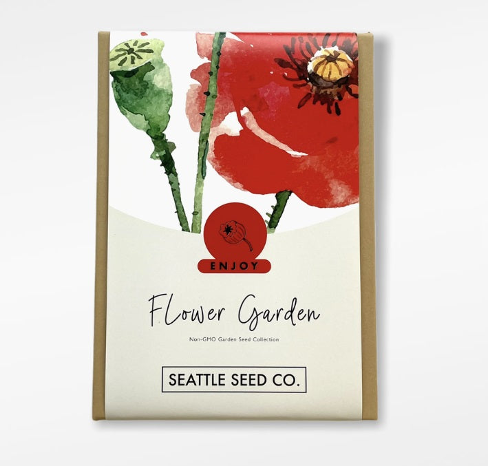 1 x pack of (5) Non-GMO garden seeds A. Culinary Herb Garden Seeds: Parsley, Sage, Chives, Basil, Thyme OR B. Flower Garden Seeds: Calendula, Cosmos Mix, Poppies, Sunflowers, Sweet Peas